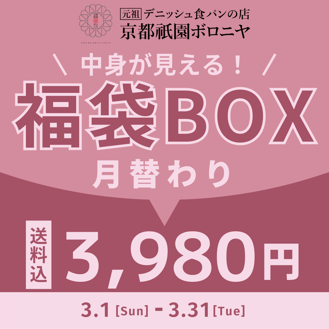 祇園と呼ばれる京都市東山区で、パンの製造販売を始め、1979年に新しく考案したデニッシュ食パンのお店の商号を「京都祇園ボロニヤ」と名付けました。発売当時、京都で爆発的に売れたデニッシュ食パンは、全国で話題となり「京都祇園ボロニヤ」の名前は知れわたり、デニッシュ食パンの代名詞になったと言えます。