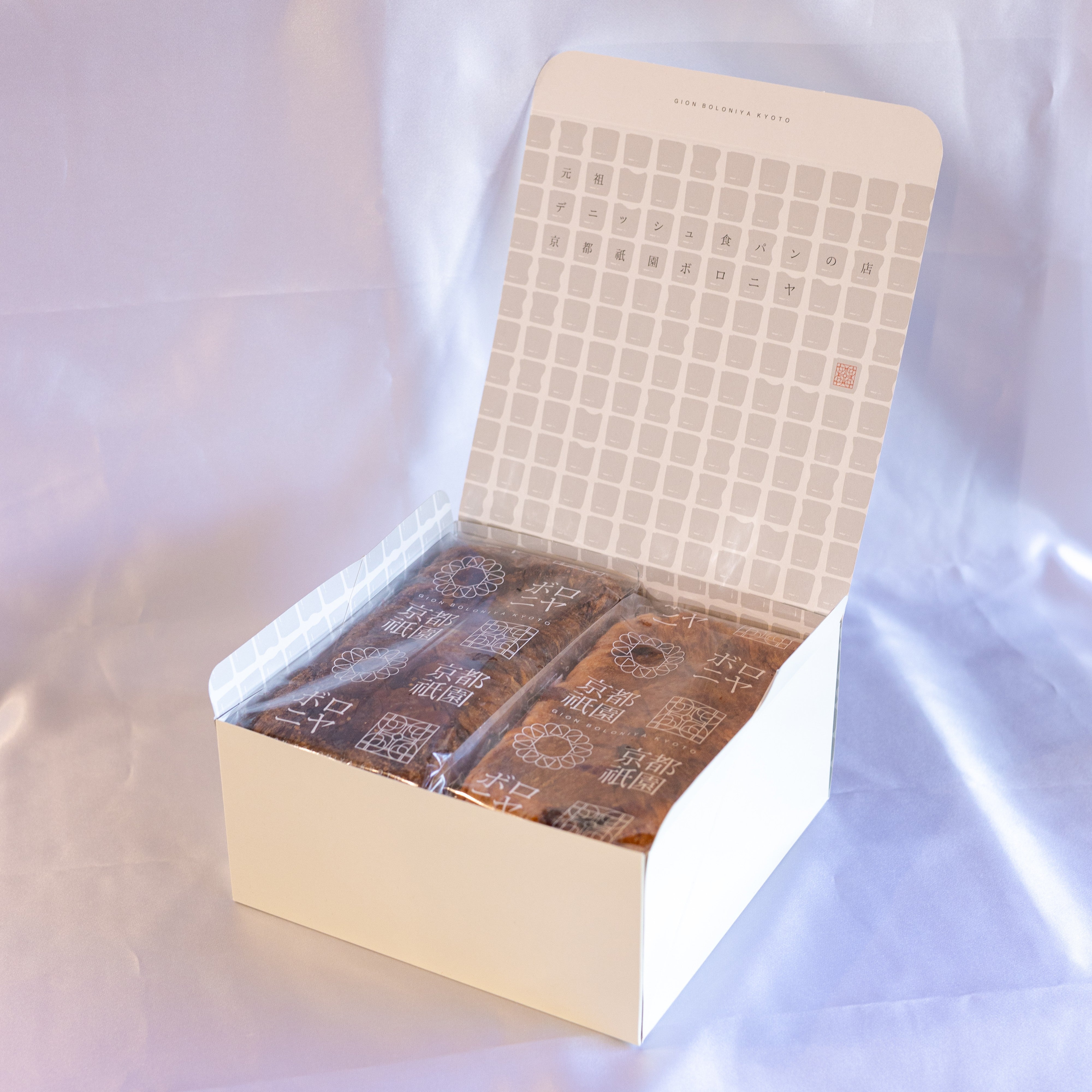 元祖京都祇園ボロニヤのデニッシュ食パンの色々な味を楽しめる、たいへん欲張りなセットとなります。